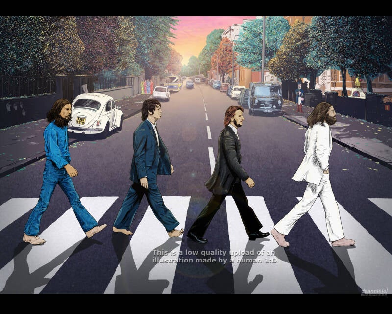 Ik kreeg het verzoek om het Beatles album "Abbey Road" in mijn eigen stijl te tekenen. De klant wou hem graag op posterformaat (60x80 cm) geprint hebben zodat hij hem mooi kan inlijsten.